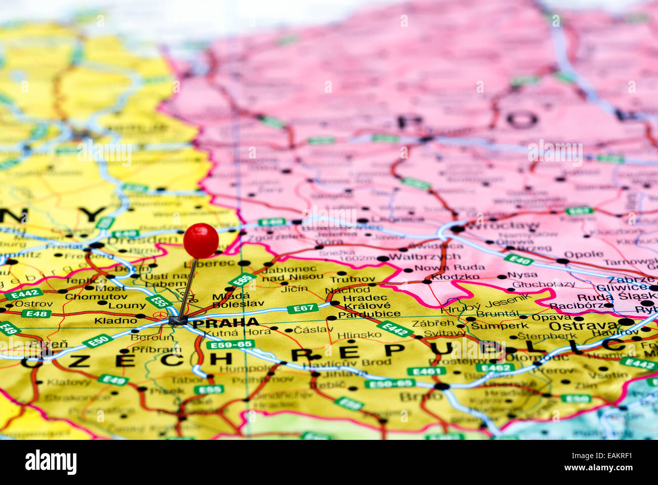 Prague Pinned On A Map Of Europe Stock Photo Alamy
