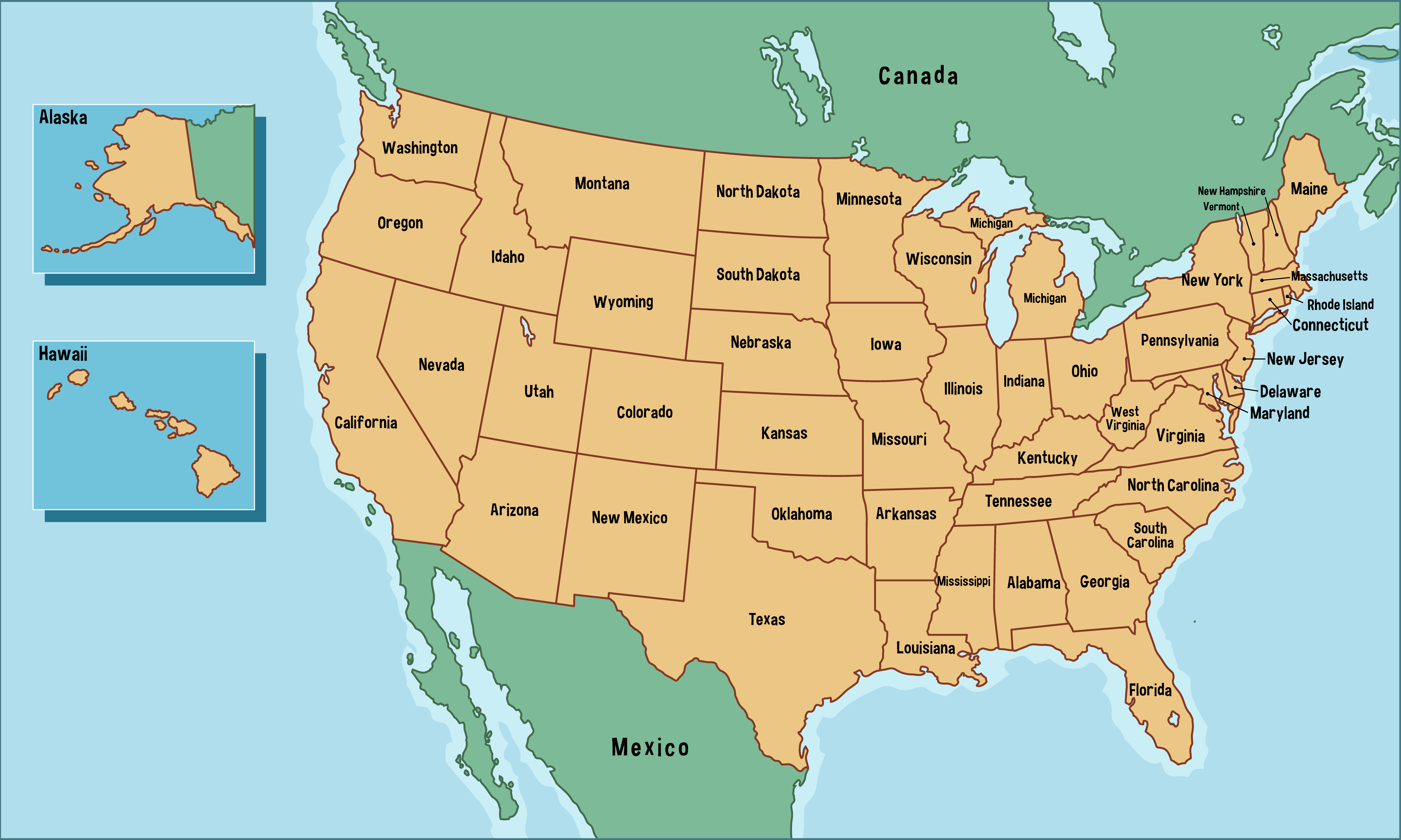 United States Of America Map With States Names Your Home Teacher