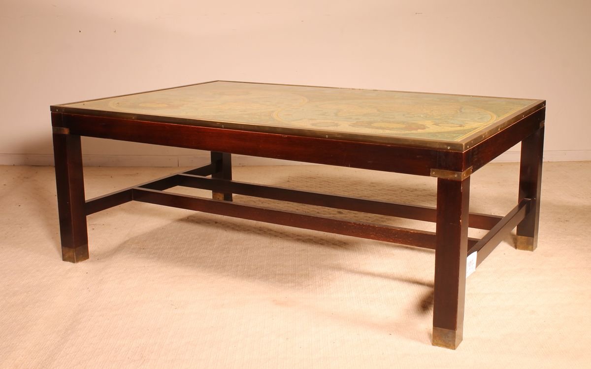 Engraved Copper Plate Campaign Coffee Table World Map Roman Calendar Months At 1stdibs